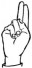 На ћирилици написано ТАНКОСА РАДОВАНЧЕВИЋ састоји се из 19 слова [?]. Исписано ћириличном једноручном азбуком за глувонеме: